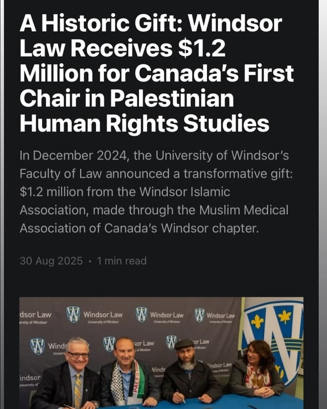 This comes in sharp contrast with the nearby University of Windsor, which announced over the summer that its Law faculty received $1.2 Million for Canada’s First Chair in Palestinian Human Rights Studies. The donation was made by the Muslim Medical Association of Canada’s Windsor chapter.
